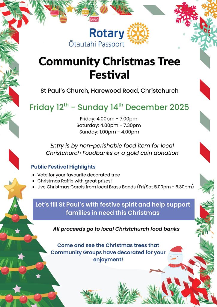 The Rotary Ōtautahi Passport Community Christmas Tree Festival is coming up at St Paul’s Anglican Church, Papanui from Friday 12 to Sunday 14 December.
